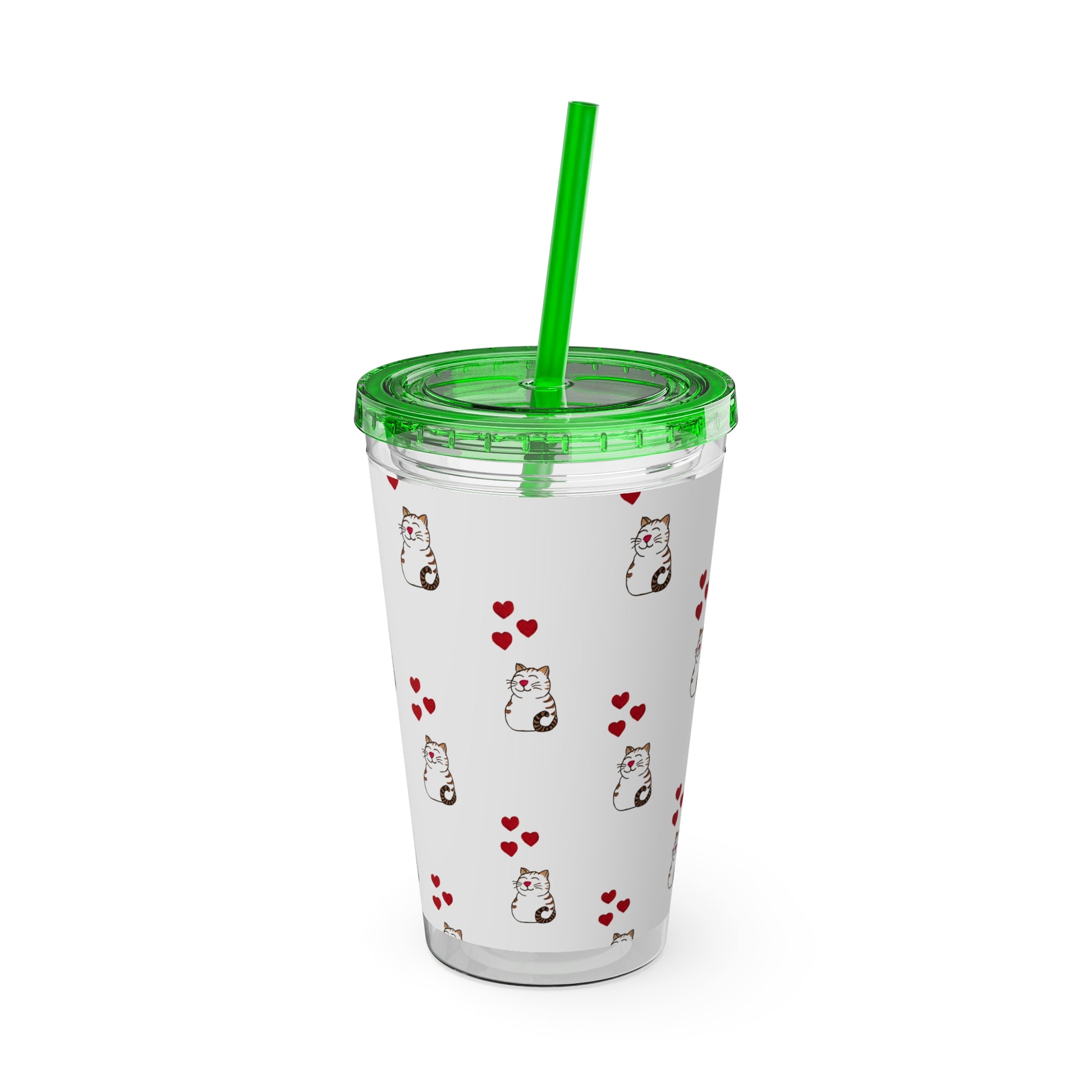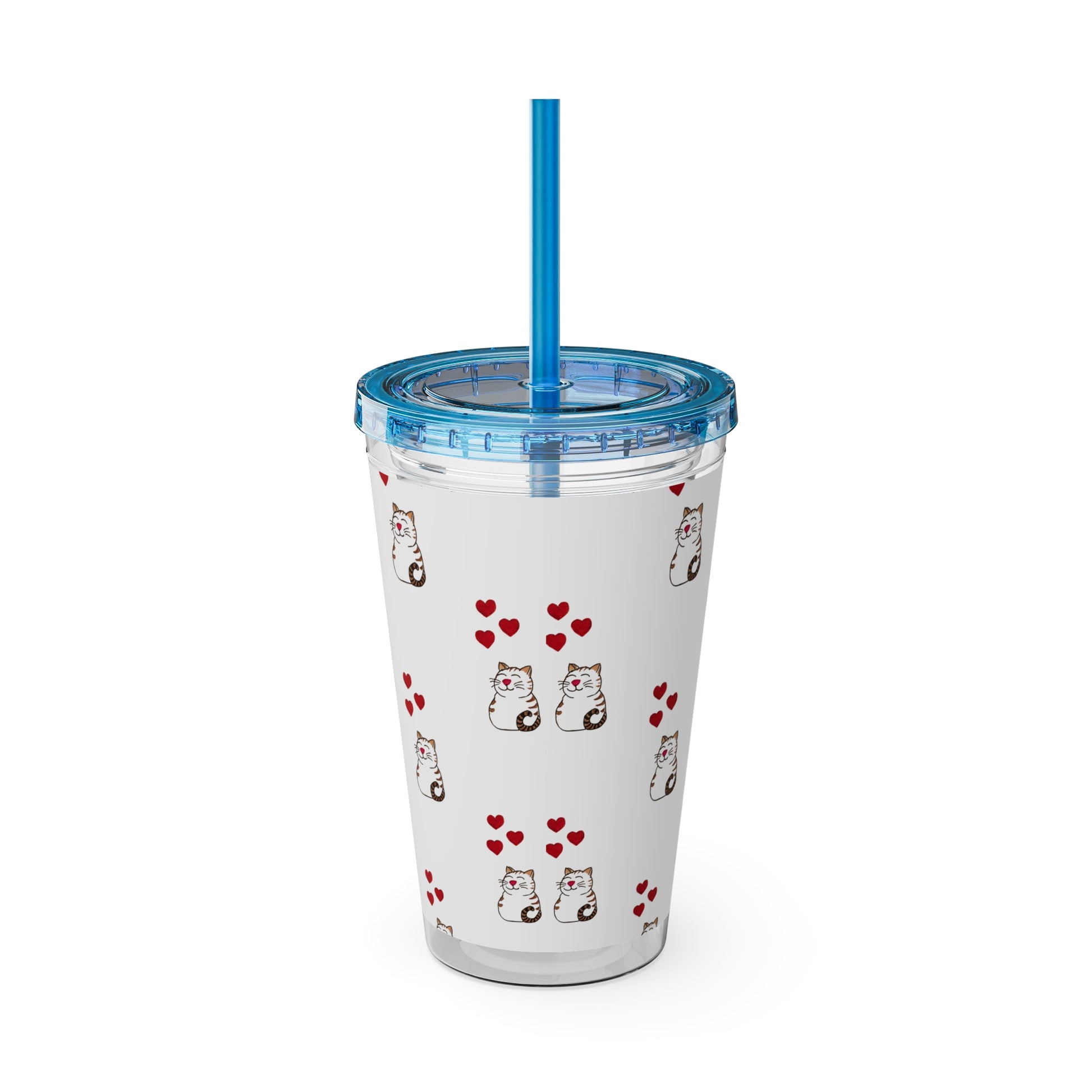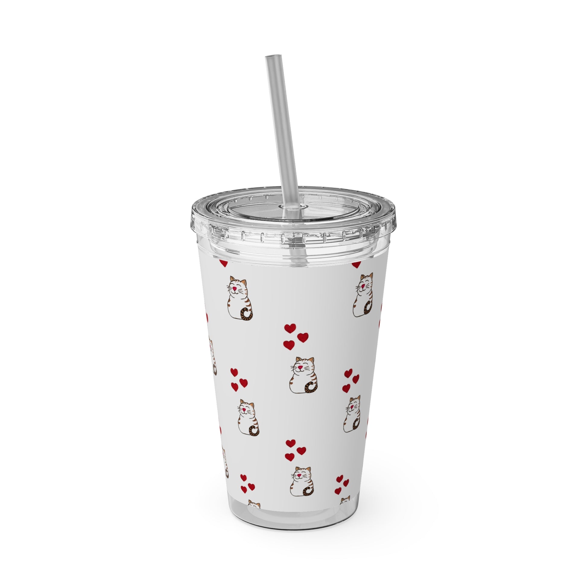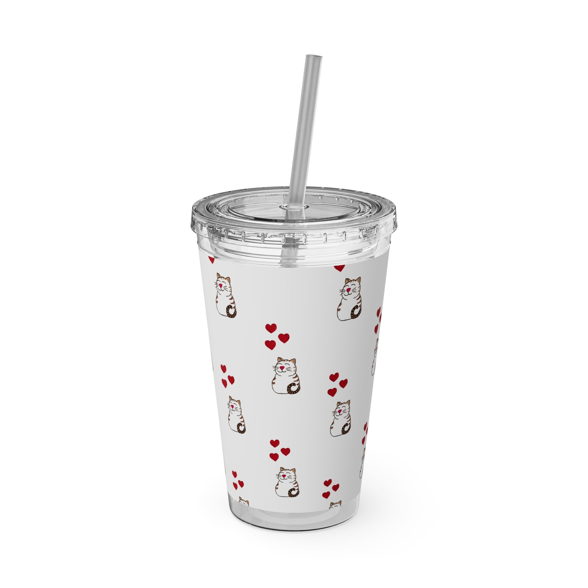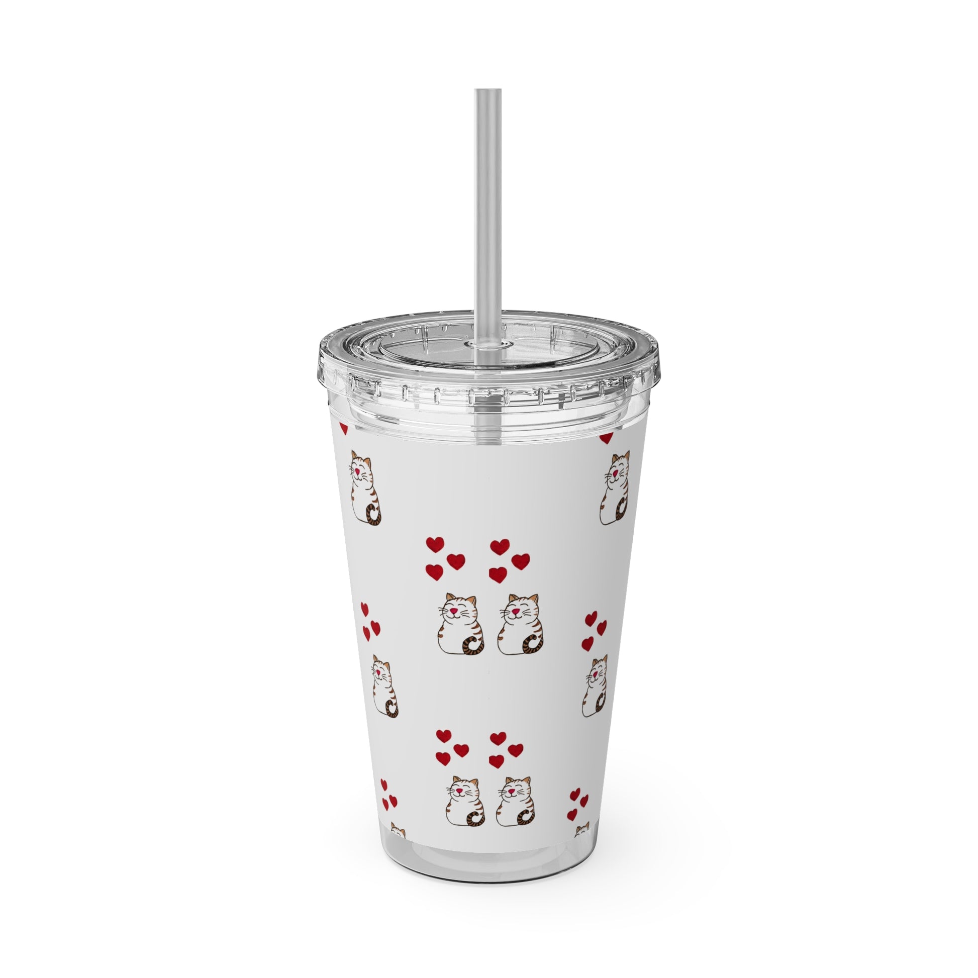 Cat and Hearts Tumbler with Straw, 16oz